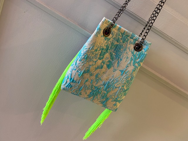 2wayでつかえるミニバッグ 動くたびに揺れるフリンジがキュート! 肩掛けにする時に ぎゅっと口がしまると フリンジがよく見えて可愛いです。 スマホ、お財布、リップを入れても まだ少し入ります。 フォーマルにも カジュアルにも コーデのポイントにばっちりです。 持ち手は軽い使い心地のチェーンになっています。 type: bag color: 表面 水色、白 裏地 ピンク フリンジ 蛍光黄緑 サイズ: 縦19cm 横15cm マチ9cm お届け:こちらの商品はご注文より約1〜3日で発送致します。 ------------------------------------------