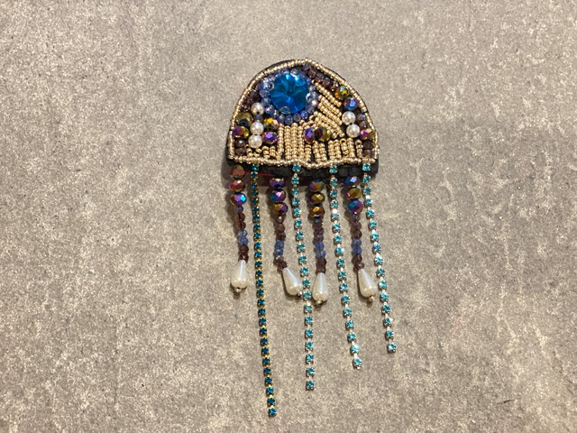 くらげちゃんのクリップです。 垂れ下がるビーズが動くたびに可愛い! ヘアアレンジだけじゃなく 襟元やバッグの持ち手に着けても素敵。 type: クリップ color: 表 青、水色、シルバー、紫 裏 ピンク サイズ: 横13cm×縦5.5cm お届け:こちらの商品はご注文より約1〜3日で発送致します。 ------------------------------------------