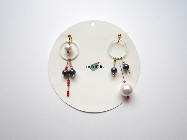jewel series トレンドに左右されず、思うままに、なりたい自分でいられる独創さを表現したアクセサリーです。 古い物や新しい物をつなぐことでもたらす変化により、その魅力を再発見できるようなアクセサリー。 ひとつひとつ個性をもたせる為、時間をかけて思考、製作しております。 生み出されたアクセサリーにより、着用された方の自分らしさを表現していただければと願っています。 金具: イヤリング 素材: surgical stainless サージカルステンレスは、ステンレスの中でもアレルギー性の極めて低い素材です。医療用工具のメスやハサミ、ボディピアスにも使用されています。 サイズ: 右 約8.5×3㎝ 左 約9×3㎝ お届け:こちらの商品はご注文より約3~5日で発送致します。