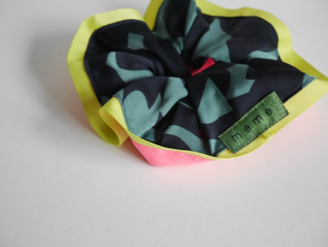こだわりぬいた生地と アクセントのフチリボン 華やかな色使いと丁寧な手仕事によって うまれたシュシュは、あなたの ヘアアレンジを一層素敵に演出します。 髪がさり 腕かざり さまざまな形で日々の生活にイロドリを。 日本製の柔らかいゴムを使用しております。 type: シュシュ color: 表 薄ピンク、黒、白、緑、茶色 裏 蛍光ピンク フチ 黒 サイズ: 直径15cm お届け:こちらの商品はご注文より約1〜3日で発送致します。 ------------------------------------------