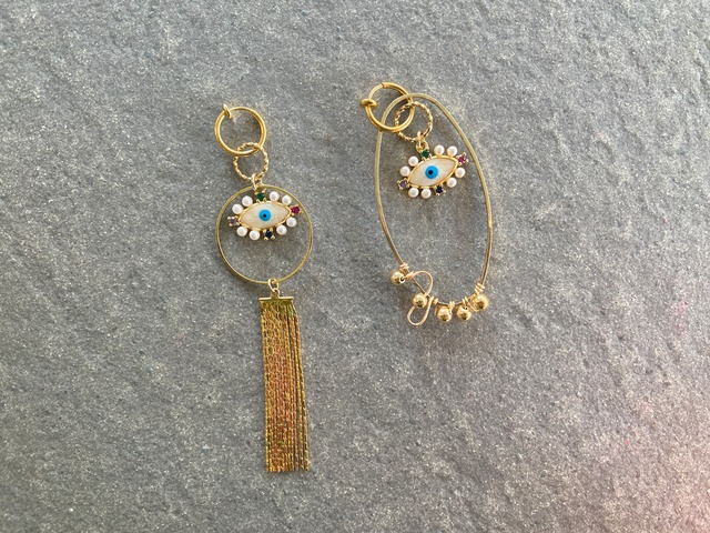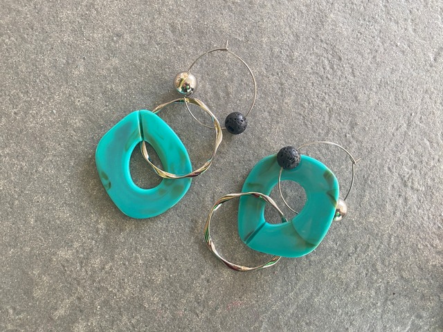 inspi series トレンドに左右されず、思うままに、なりたい自分でいられる独創さを表現したアクセサリーです。 古い物や新しい物をつなぐことでもたらす変化により、その魅力を再発見できるようなアクセサリー。 ひとつひとつ個性をもたせる為、時間をかけて思考、製作しております。 生み出されたアクセサリーにより、着用された方の自分らしさを表現していただければと願っています。 リングパーツを上下逆にしてシンメトリーにしてもok.リングパーツを片方だけつけてアシンメトリーにしてもok.リングパーツを取って、フープピアスとしても使用可能!使い方無限大のカラフルピアスです♡ 金具: ピアス 素材: surgical stainless サージカルステンレスは、ステンレスの中でもアレルギー性の極めて低い素材です。医療用工具のメスやハサミ、ボディピアスにも使用されています。 サイズ: フープピアス 直径3.5cm 左右 約縦10×横4㎝ フープ部分含む お届け:こちらの商品はご注文より約1〜3日で発送致します。