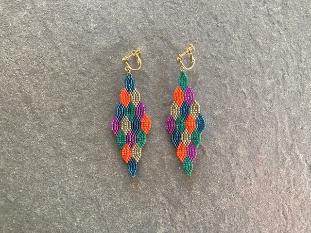 inspi series トレンドに左右されず、思うままに、なりたい自分でいられる独創さを表現したアクセサリーです。 古い物や新しい物をつなぐことでもたらす変化により、その魅力を再発見できるようなアクセサリー。 ひとつひとつ個性をもたせる為、時間をかけて思考、製作しております。 生み出されたアクセサリーにより、着用された方の自分らしさを表現していただければと願っています。 ひとつひとつ手編みしたビーズモチーフがカラフルで可愛い! 金具: ピアスorイヤリング選択可 素材: surgical stainless サージカルステンレスは、ステンレスの中でもアレルギー性の極めて低い素材です。医療用工具のメスやハサミ、ボディピアスにも使用されています。 サイズ: 左右 約縦7×横2.5㎝ お届け:こちらの商品はご注文より約1〜3日で発送致します。