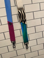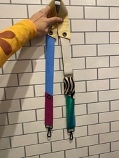 カラフルで目を引くデザインと、太めのストラップで疲れにくい使い心地が魅力。